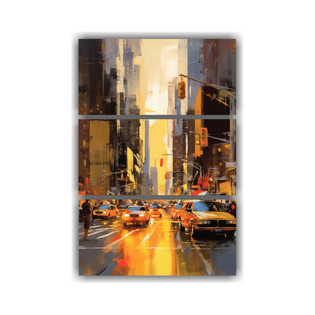 Este conjunto de tres cuadros es perfecto para decorar una sala de estar o un dormitorio moderno Puedes colocarlos en una pared blanca para que los colores vibrantes resalten y se conviertan en el centro de atención También puedes combinarlos con muebles de colores neutros como beige o gris para crear un contraste sofisticado ¡Deja que la vida moderna de Nueva York llene tus espacios con energía y estilo!