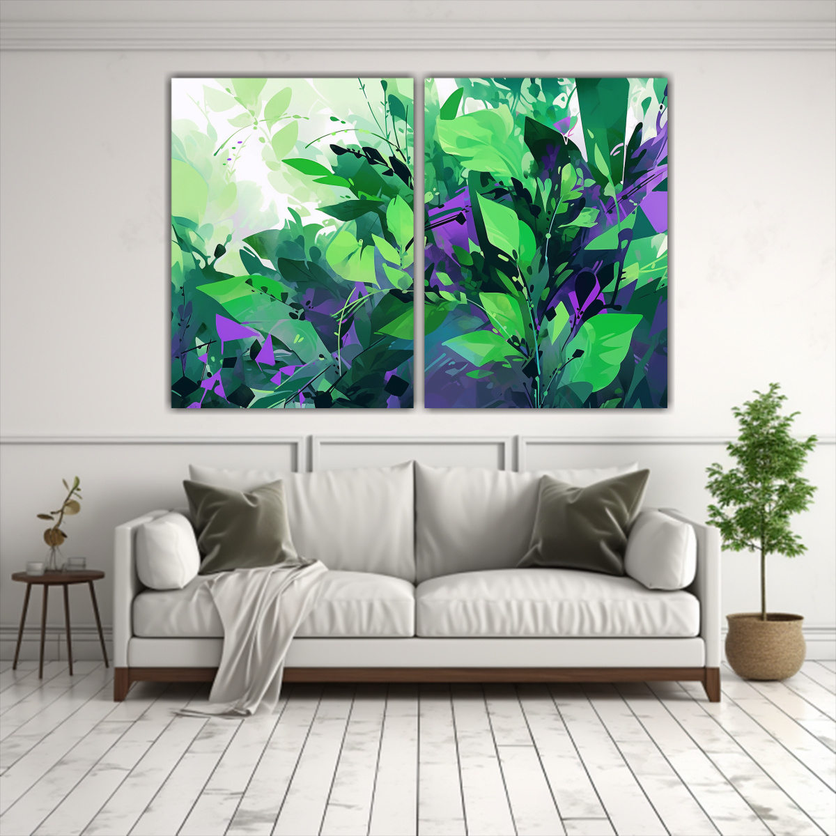 Decora tus espacios con los cuadros más exclusivos de nuestra tienda Con una combinación de colores vibrantes como el verde y morado, estos cuadros añadirán un toque de elegancia y modernidad a tu hogar Nuestra tela de alta calidad y bastidores de madera garantizan durabilidad y estilo