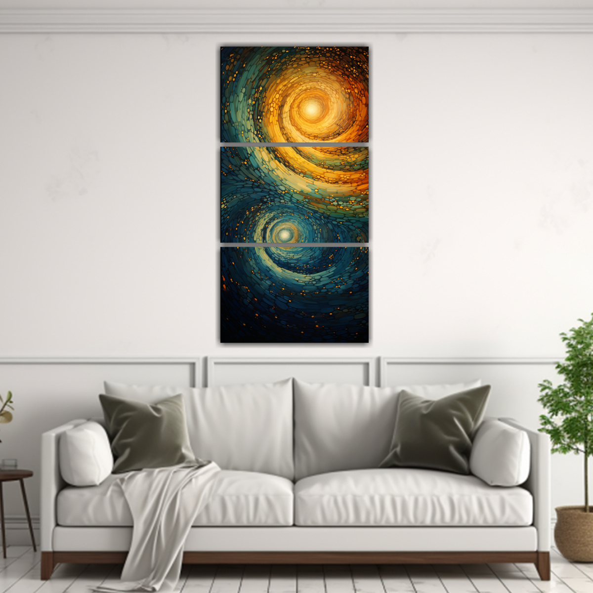 Este cuadro Galería Street Art con patrones abstractos giratorios sería perfecto para decorar un salón moderno Puedes colocarlo sobre un sofá de color neutro para resaltar su diseño vibrante y agregar un punto de interés visual Combínalo con cojines en tonos dorados, plateados y grises para crear una atmósfera sofisticada ¡Sorprende a tus invitados con esta pieza única de arte en tu hogar!