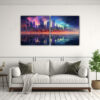 DecoCuadros ofrece cuadros Galería Street Art con una vista urbana y luz matutina reflejada Los colores lila, azul marino grisaceo, turquesa, gris, dorado, negro y carmesí dan vida a estas impresiones en tela de alta calidad ¡Aprovecha nuestras entregas rápidas y envíos gratuitos en Santiago!