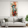 Este cuadro geométrico abstracto en contraste sería perfecto para decorar un salón moderno Colócalo sobre un sofá blanco o gris para resaltar los tonos plateados y grises del cuadro Combínalo con cojines en tonos carmesí, coral y turquesa para añadir un toque de color Completa la decoración con una alfombra en tonos beige y menta para crear un ambiente armonioso y elegante