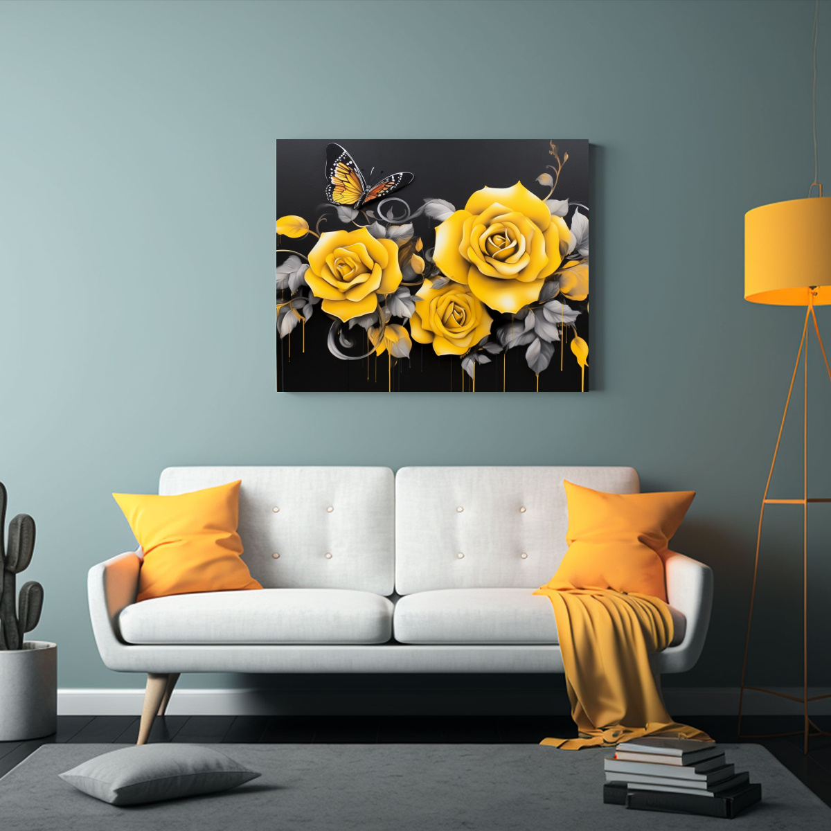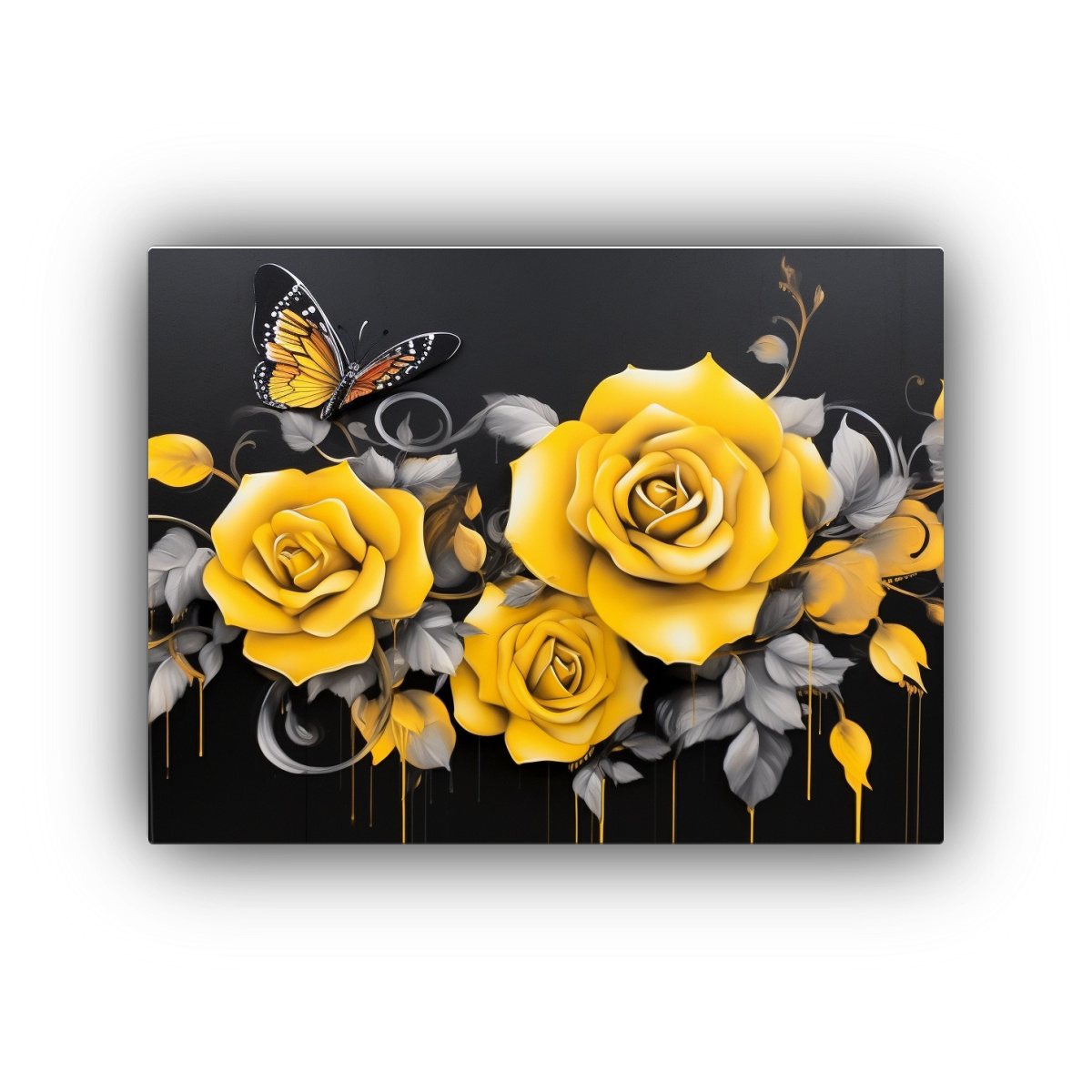 Cuadros Graffiti Rosas Negras Y Amarillas En Lienzo.