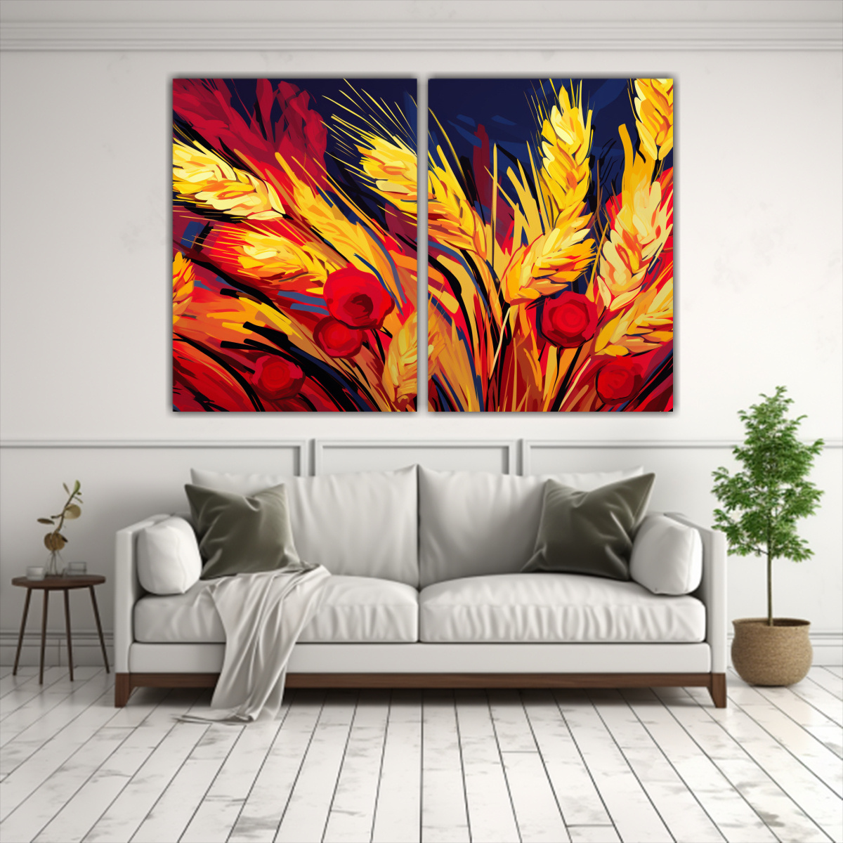 Cuadros Hermosos Temática De Granos De Centeno En Colores Amarillo Y Rojo, Atmósfera Neonoir.