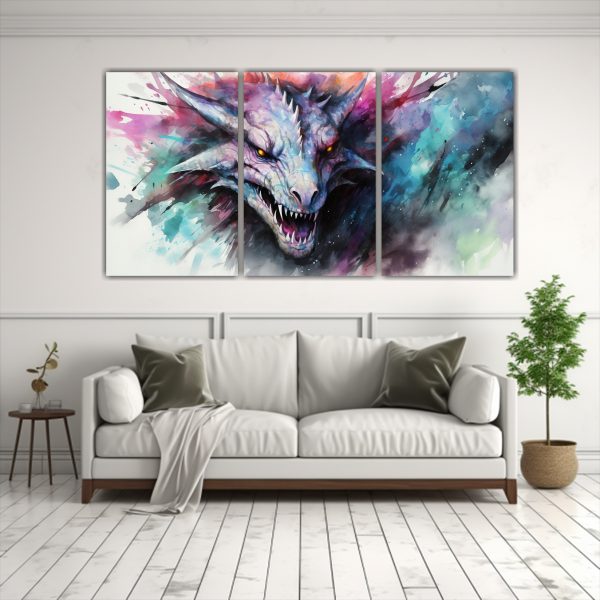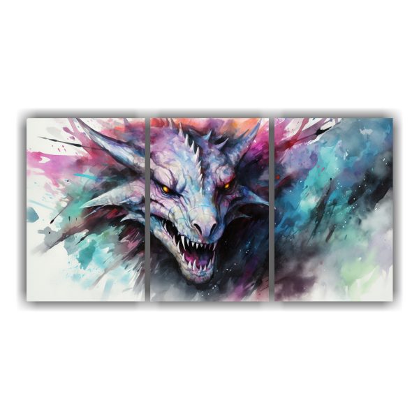 Este set de 3 cuadros de dragón en acuarelas neonoir sería ideal para decorar un dormitorio o sala de estar con temática fantástica Colócalos juntos en una pared principal para crear un punto focal impactante y misterioso