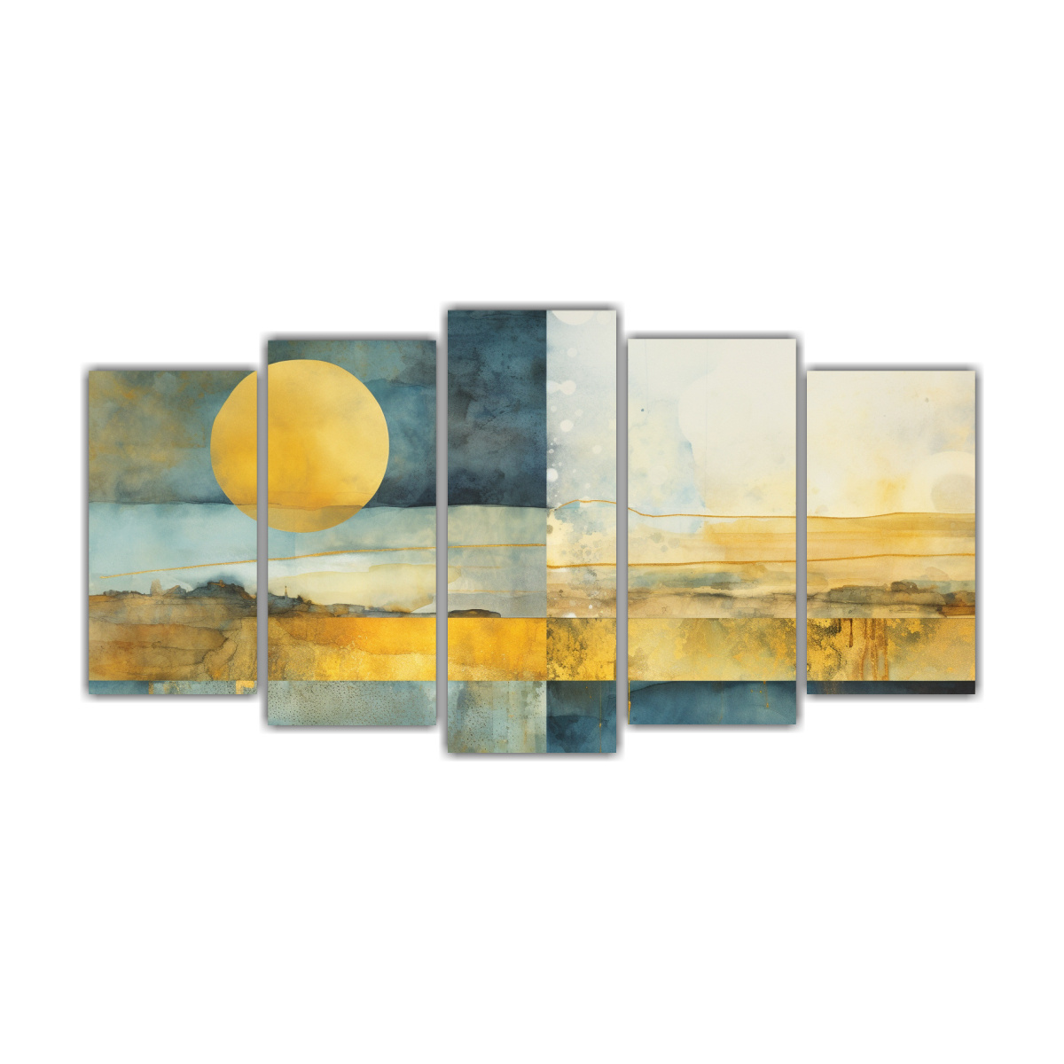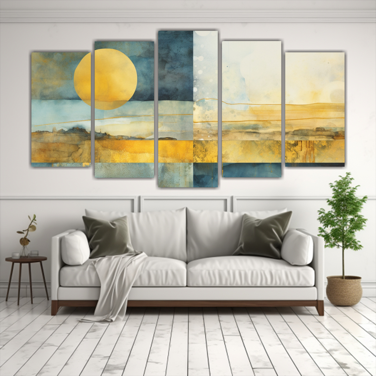 Cuadros Imagen Para Cocina Con Acuarela Amarilla, Verde Azulado Y Oro.