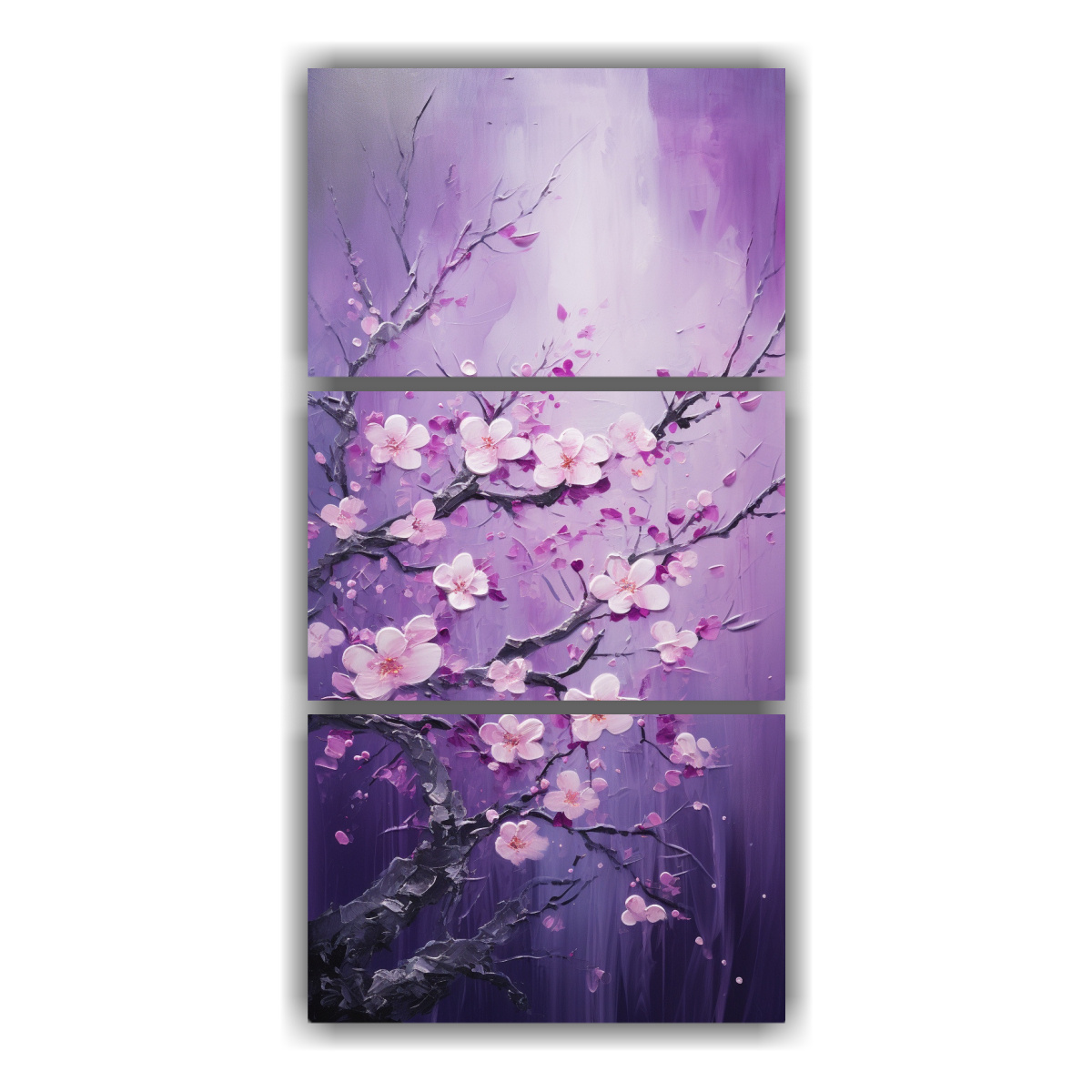 Renueva tu espacio con la elegancia de los Cerezos Morados en este lienzo de calidad excepcional Los tonos Lila, Azul Marino grisaceo, Indigo, Beige y Gris brindarán armonía a tu decoración Aprovecha nuestros precios insuperables y entrega express en regiones