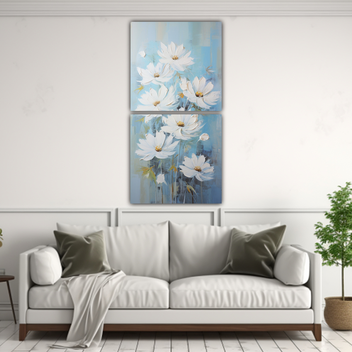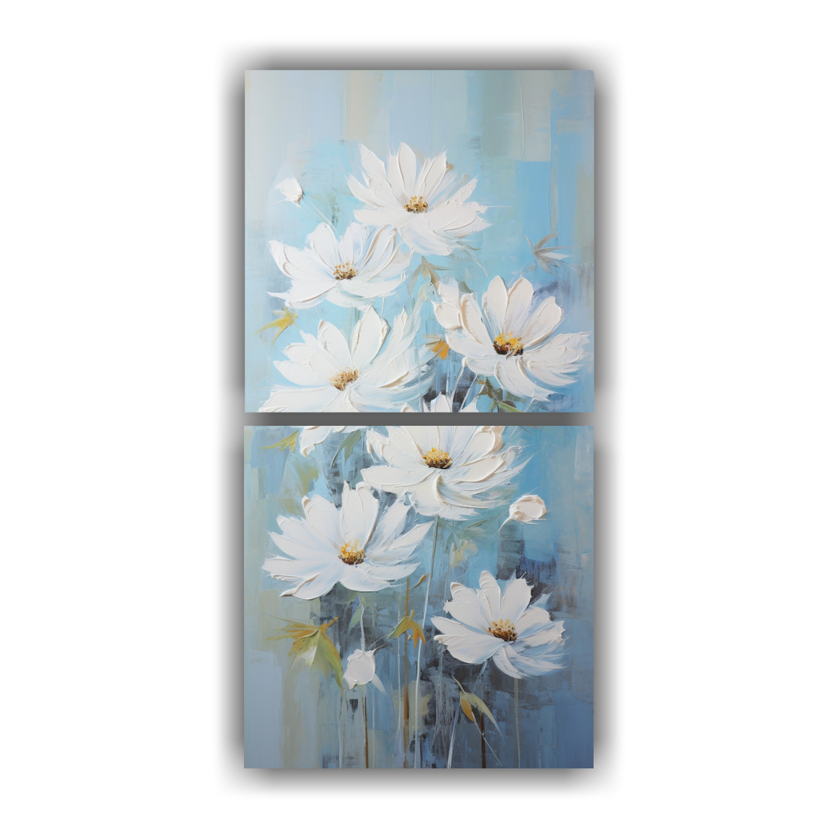 DecoCuadros te ofrece el Set 2 Composiciones Impreso Urbano A White Colors flowers painting on canvas in the style of Con colores como el Plateado, Azul Marino grisaceo, Beige y Gris, este cuadro añadirá un toque moderno y elegante a tu espacio Hecho con materiales de alta calidad, este cuadro es perfecto para decorar tu hogar u oficina Aprovecha nuestra oferta y adquiere este increíble cuadro con diseño exclusivo