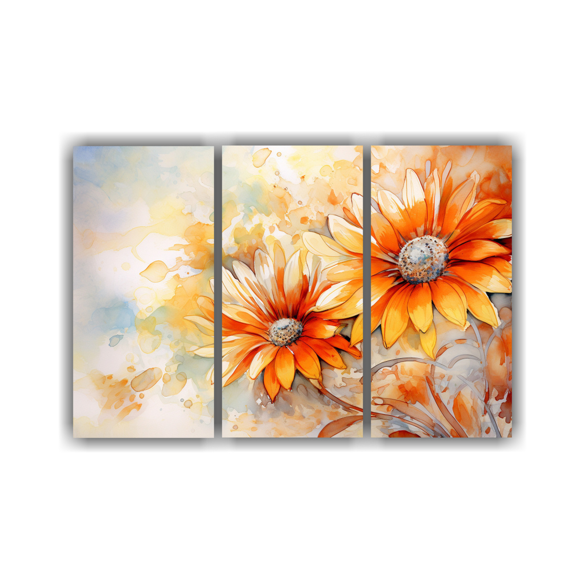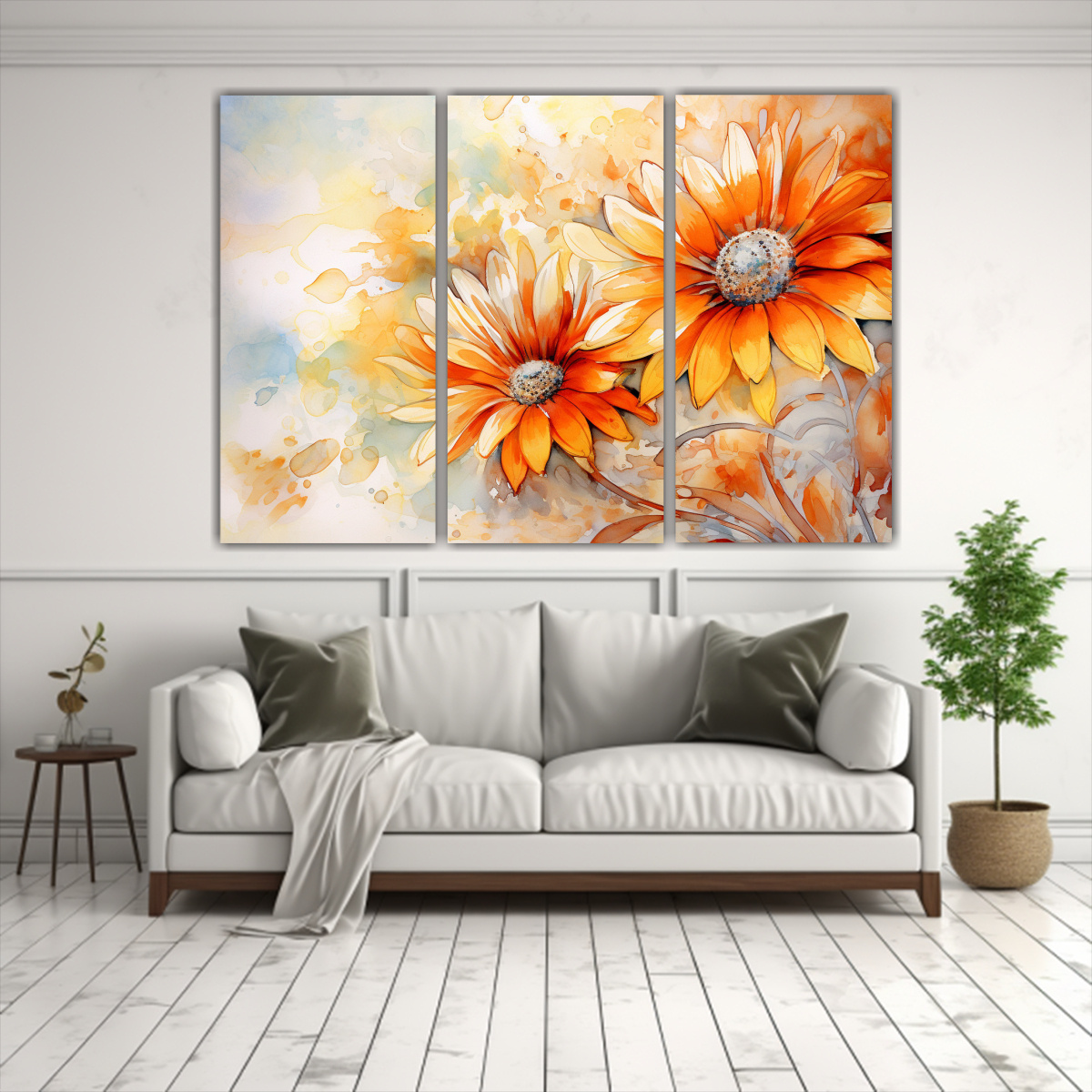 Cuadros Impresos Abstractos De Margaritas En Colores Naranja Y Oro
