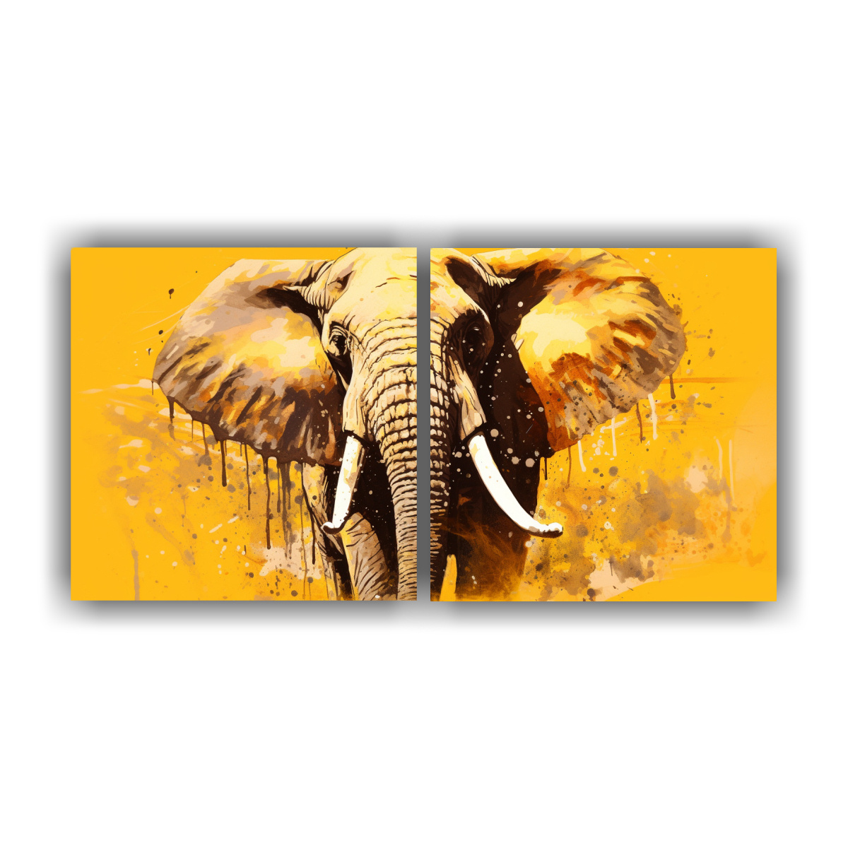 Cuadros Impresos Brillantes De Elefante En Sabana Amarillo Y Oro Neo Pop Arte
