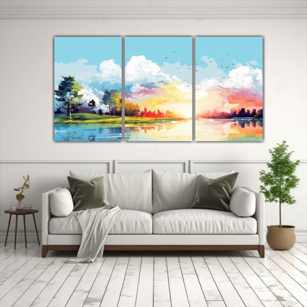 Este cuadro ‘Summer season landscape’ encajará perfectamente en la pared sobre la mesa del comedor de tu cocina, creando un ambiente fresco y colorido que realzará la decoración de tu espacio culinario Combínalo con accesorios en tonos neutros para un contraste equilibrado
