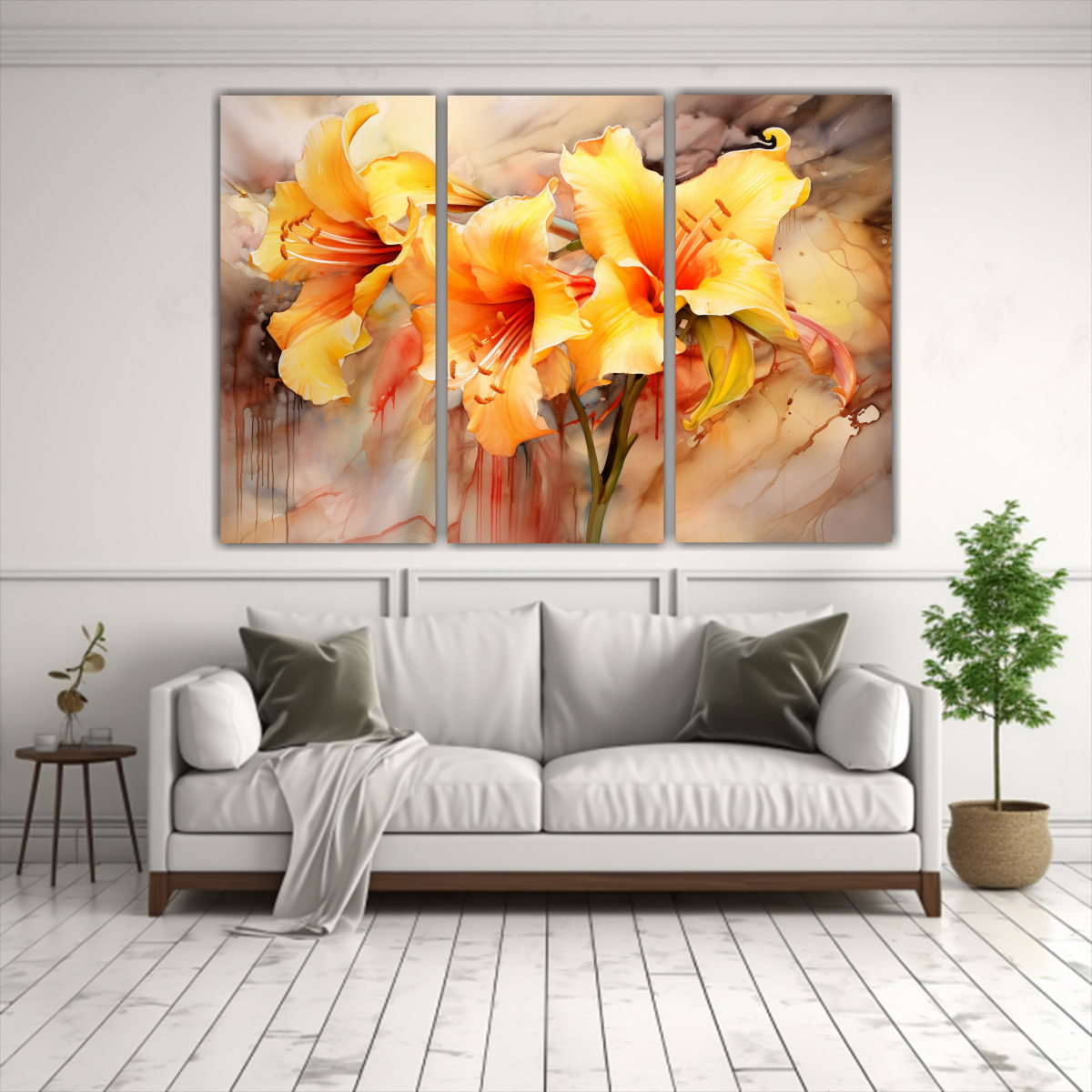 Cuadros Impresos De Amapolas Amarillas Y Abstracto En Colores Oro