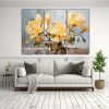 Este set de 3 cuadros de Magnolias Amarillas Abstractas con luminosidad sería perfecto para decorar un salón elegante o una oficina moderna Colócalos juntos en una pared blanca para resaltar su belleza y luminosidad