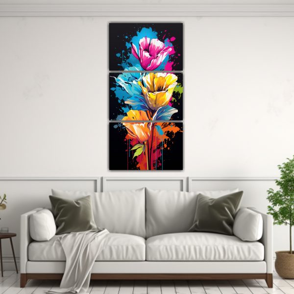 Para realzar la elegancia de tu sala de estar, te recomendamos colocar estos cuadros impresos en tela en una pared de color blanco o gris claro El contraste de los colores Coral, Turquesa y Carmesí destacará en este ambiente, creando un ambiente sofisticado y moderno