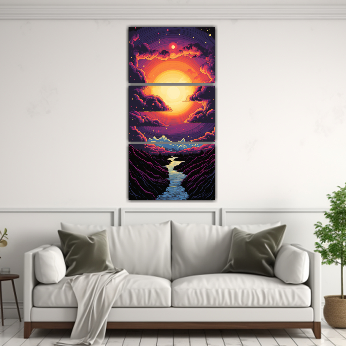 Recomendamos colocar este set de 3 cuadros en un espacio amplio y luminoso, como el salón o la sala de estar Combina perfectamente con muebles en tonos neutros como gris o blanco, y aporta un toque de color y dinamismo a la decoración También se puede colocar en una oficina creativa o en un espacio de estudio para inspirar y motivar