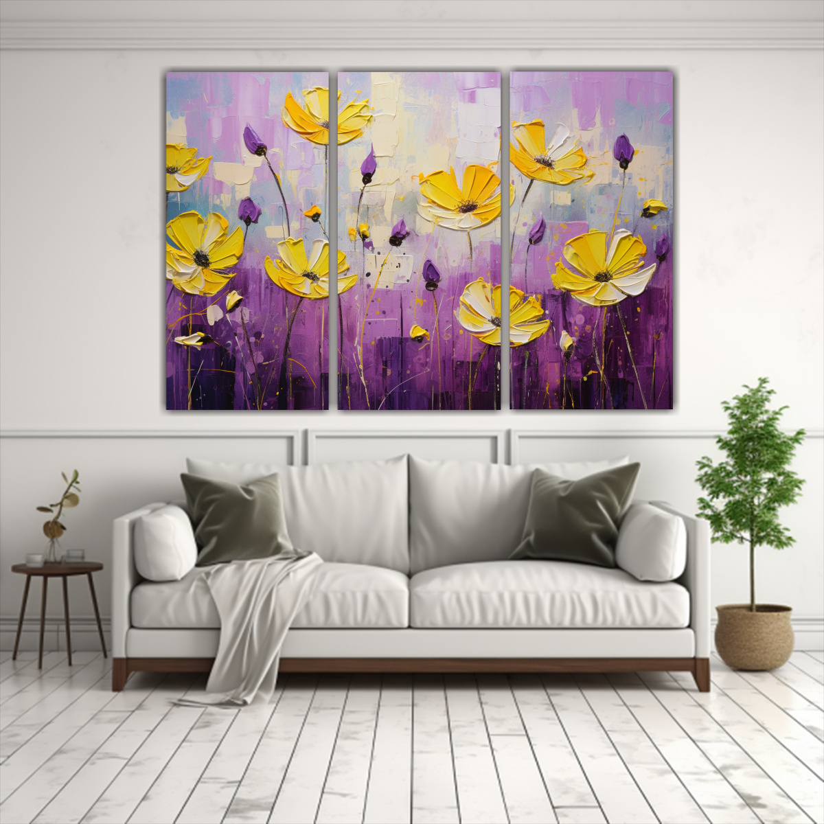 Coloca este set de cuadros en la sala de estar para darle vida y color al espacio Combínalos con muebles en tonos neutros para resaltar la belleza de las flores amarillas y moradas ¡Una manera sencilla de crear un ambiente acogedor y alegre!