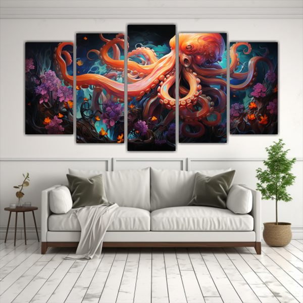 Este cuadro Octopus de estilo Estilo óleo colorido sería ideal para decorar una sala de estar moderna o un dormitorio creativo Combínalo con muebles en tonos neutros para que resalte y añada un toque de originalidad a tu espacio ¡Destaca tu personalidad con esta pieza única de DecoCuadros!