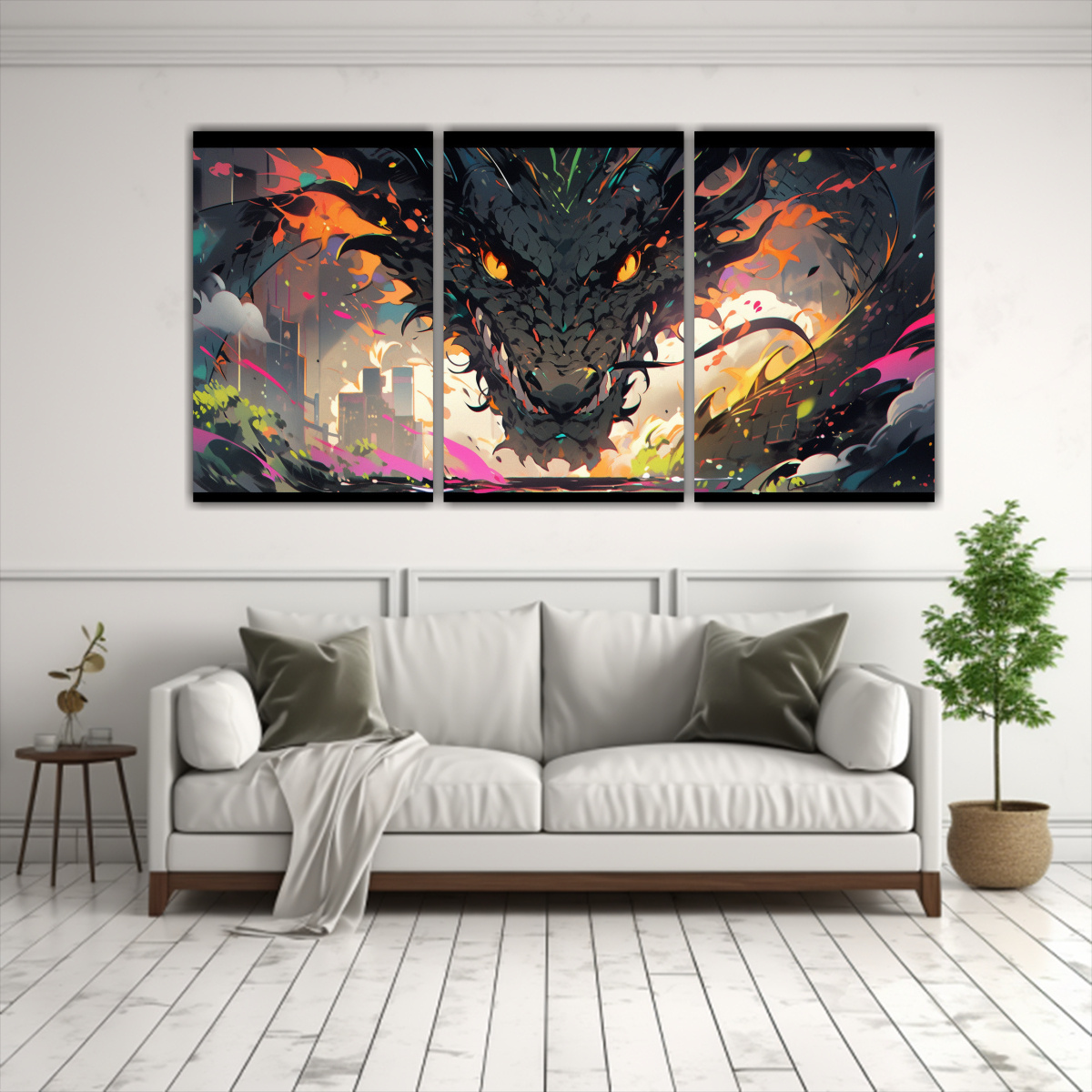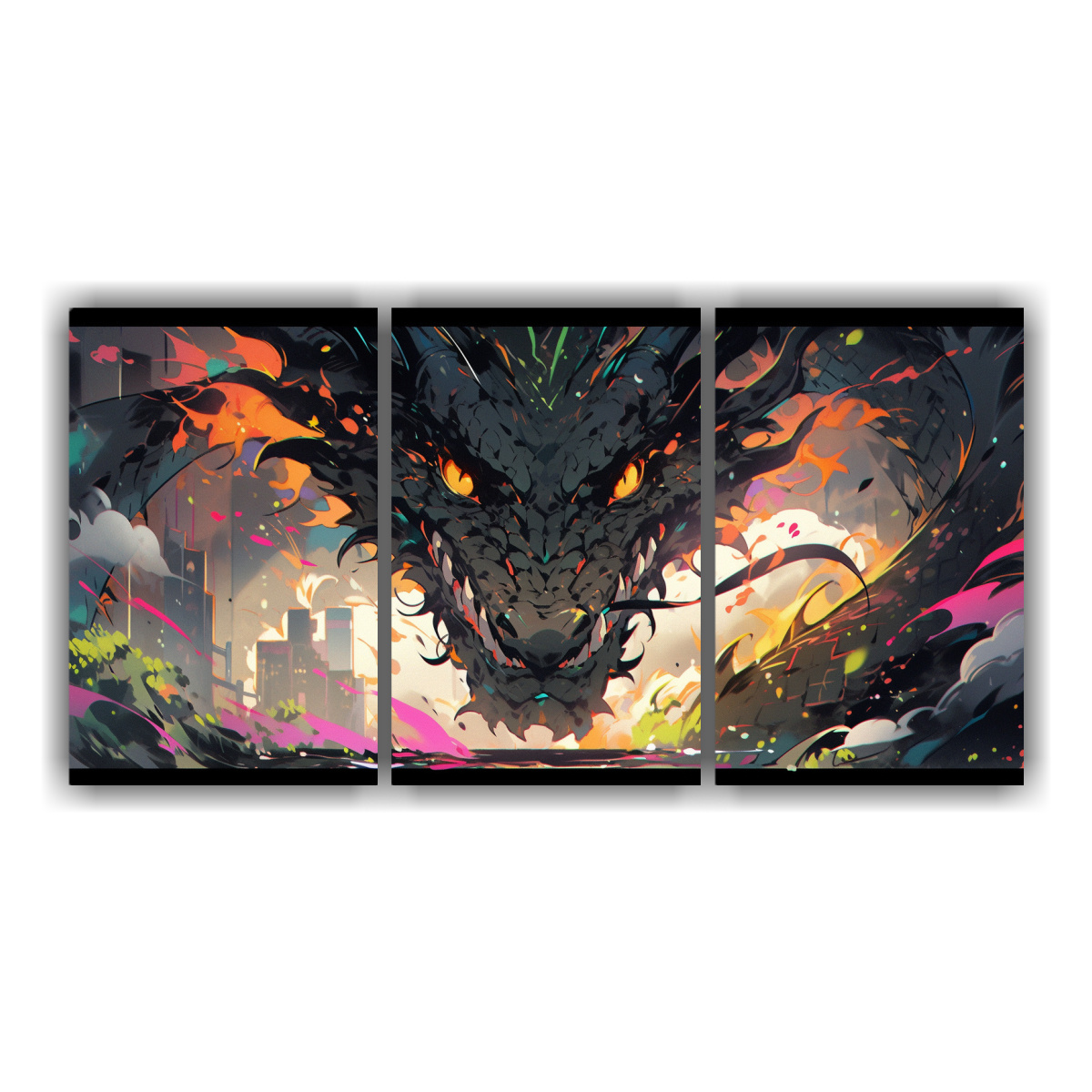 Cuadros Impresos Temática Dragón En Colores Negros Atmosfera Neonoir Neo Pop Arte