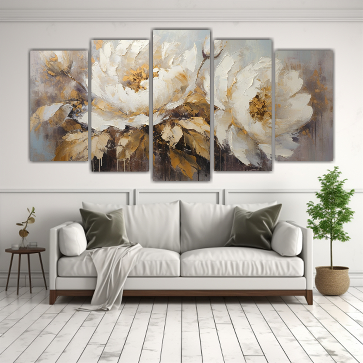 Cuadros Innovadores De Peonías Doradas En Lienzo Al Estilo De