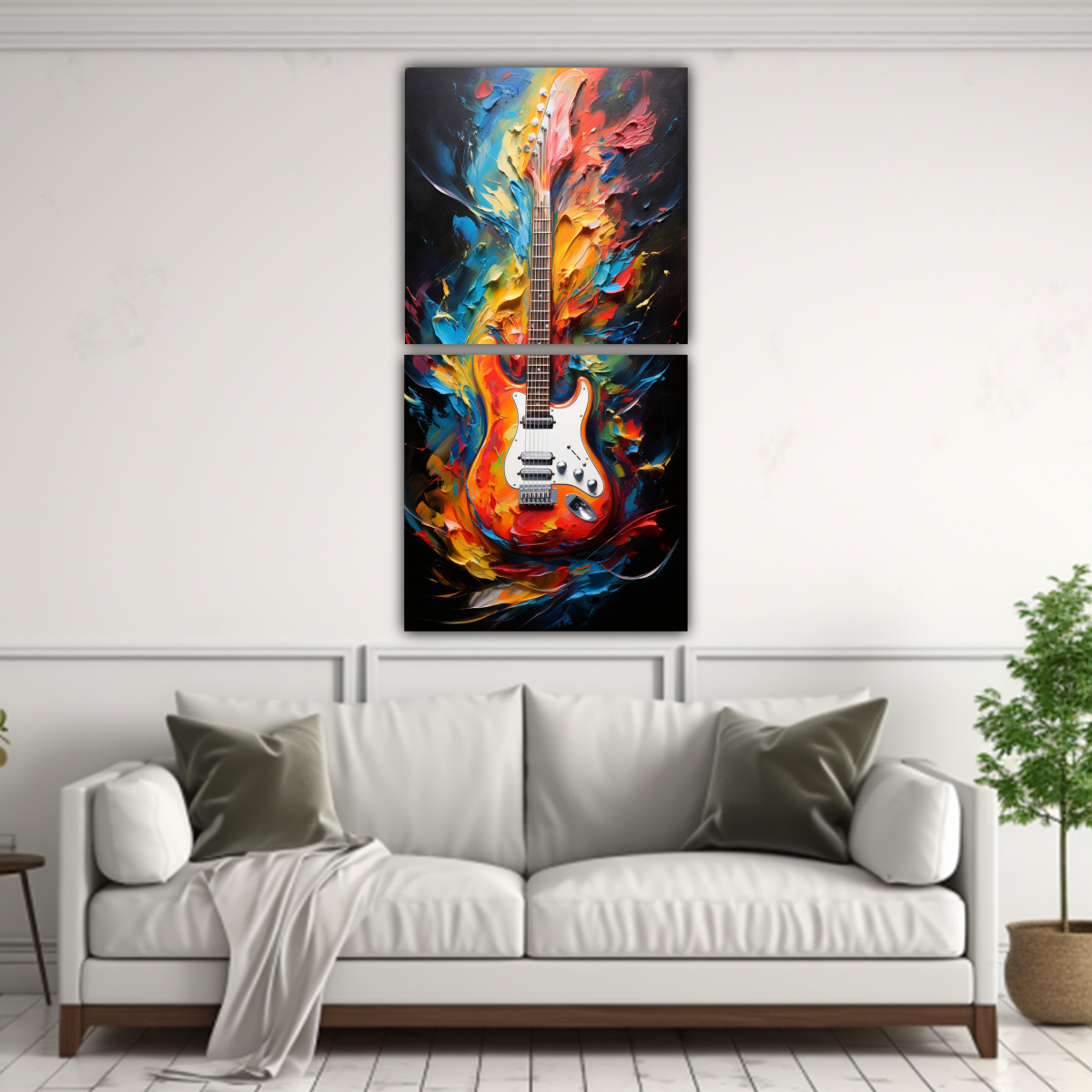 DecoCuadros te ofrece dipticos impresos de pinturas innovadoras de guitarras abstractas en una amplia gama de colores como Coral, Turquesa, Negro, Chocolate, Beige, Carmesi, Verde Azulado y Azul Marino grisaceo Nuestros cuadros cuentan con bastidores de madera y están impresos en tela de alta calidad Compra con nosotros y disfruta de la mejor calidad y los precios más económicos del mercado