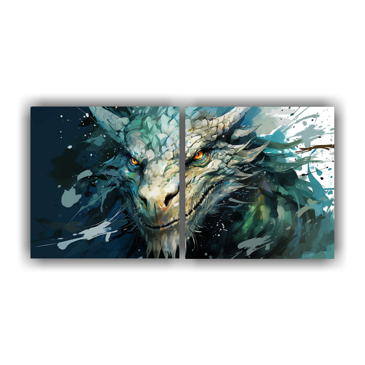 Cuadros Inspiración Dragón Verde Y Blanco Atmósfera Neonoir