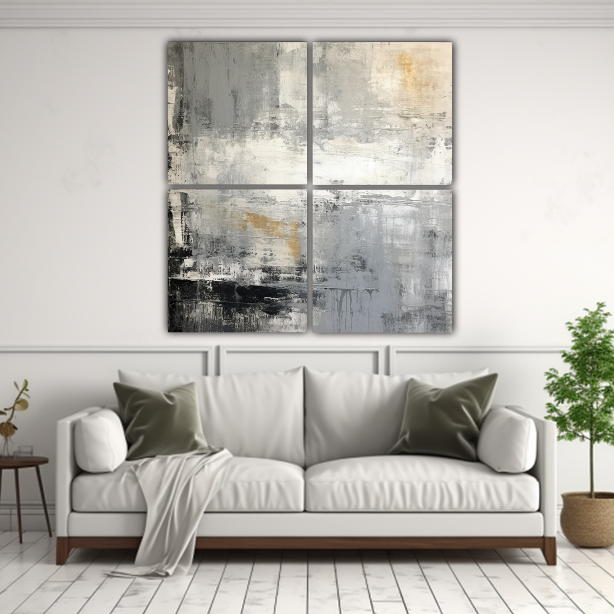Este cuadro de inspiración en tonos grises es perfecto para decorar tu sala de estar o estudio contemporáneo Colócalo sobre un sofá de color blanco o beige, y combínalo con cojines y accesorios en tonos plateados y azul marino para crear un ambiente elegante y sofisticado El esquema de colores gris dominante le dará a tu espacio un toque de calma y serenidad ¡Sorprende a tus invitados con este cuadro de diseño exclusivo y dale vida a tus paredes!