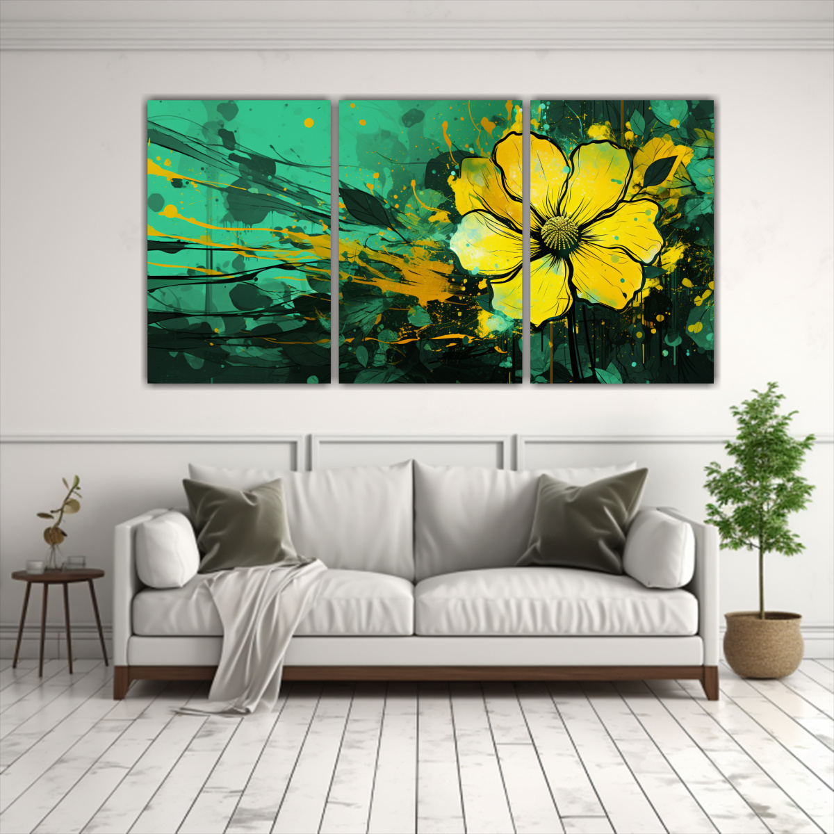 Este cuadro de Inspiración Surrealista Amarillo y Verde con atmosfera Neonoir al estilo es perfecto para decorar tu sala de estar Combínalo con muebles en tonos neutros, como gris claro o blanco, para resaltar los colores vibrantes del cuadro Además, puedes añadir cojines en tonos dorados o plateados para crear un contraste elegante ¡Atrévete a darle un toque moderno y sofisticado a tu hogar con este cuadro exclusivo de DecoCuadros!