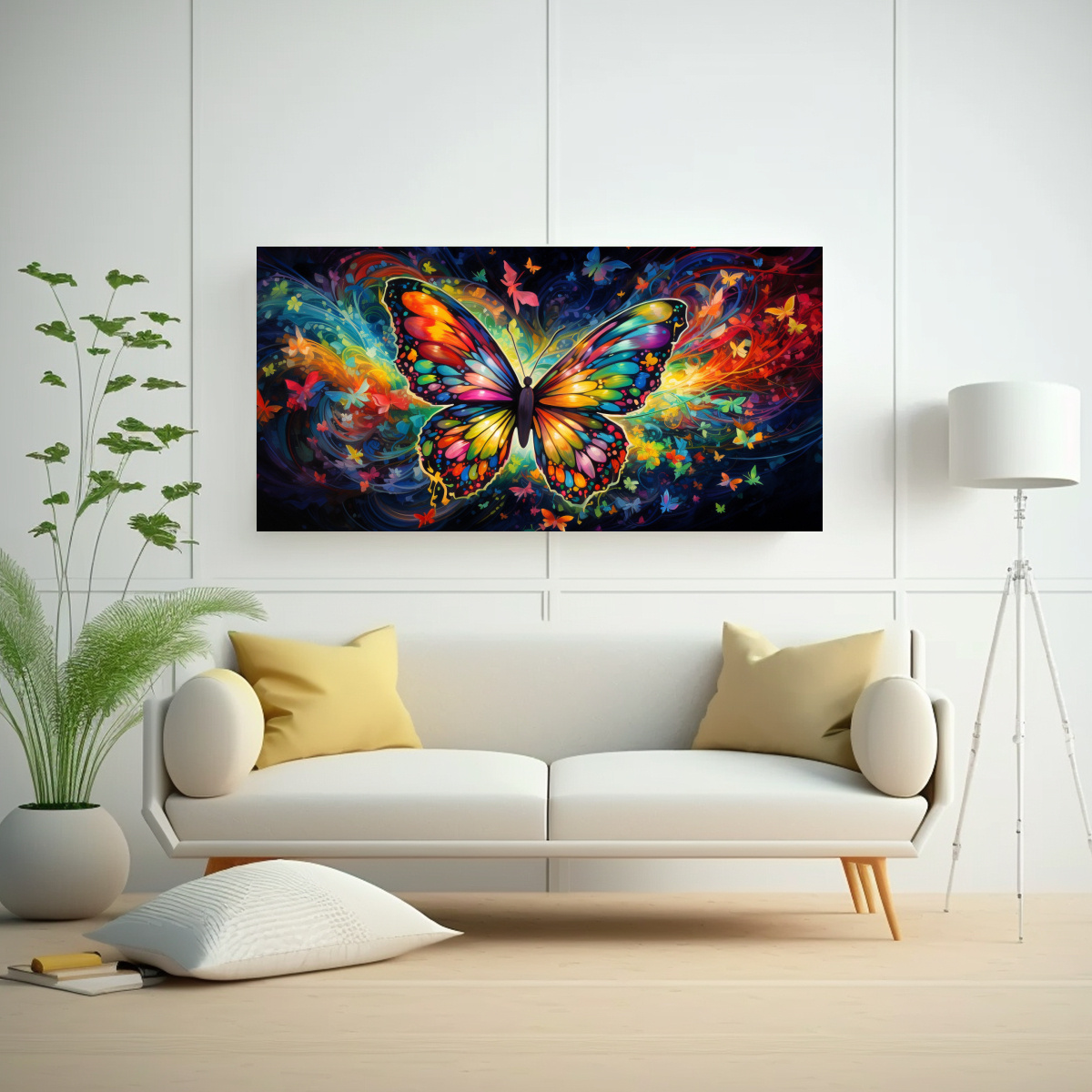 Este cuadro de mariposas abstractas sería ideal para decorar una sala de estar o un dormitorio, creando un ambiente relajante y sofisticado Combínalo con muebles en tonos neutros para resaltar su belleza y añadir un toque de elegancia a tu hogar