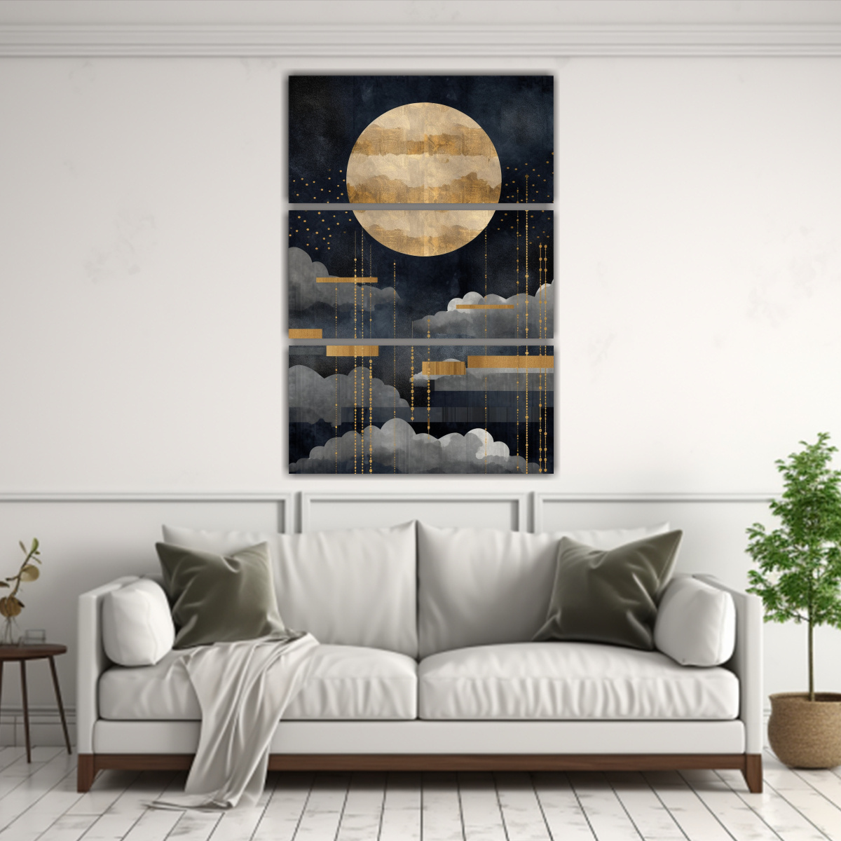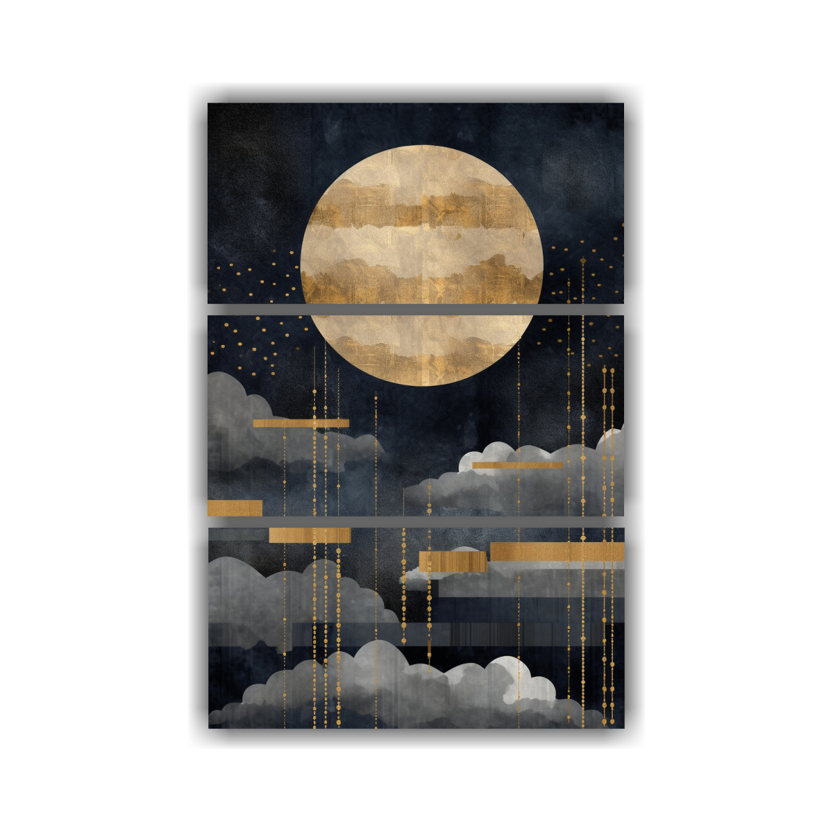 Cuadros Moderno De Nubes Y Luna En Dorado