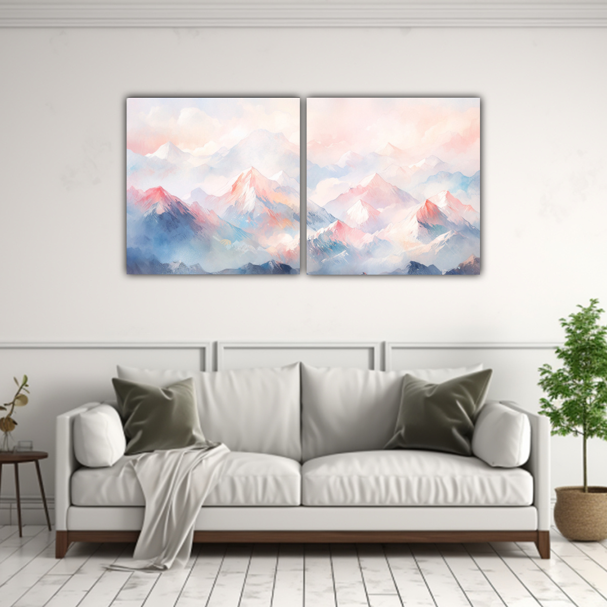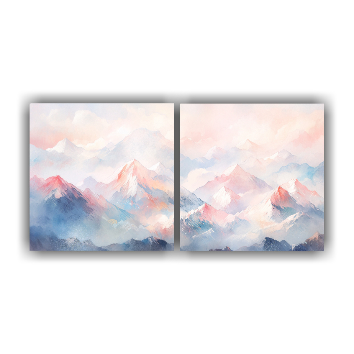 Cuadros Moderno: Montañas Nevadas En Colores Acuarela Abstractos