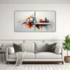 Decora tu hogar con dos artes de pared inspirados en el estilo clásico Nuestros cuadros modernos abstractos horizontales en tonos de azul marino grisaceo, plateado, carmesí, coral y gris son la opción perfecta para darle un toque elegante a tus espacios