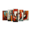 Este cuadro moderno abstracto horizontal de tela expresión lineales en colores como plateado, turquesa, azul marino grisaceo, menta, mostaza, chocolate, verde azulado y carmesí sería perfecto para decorar una sala de estar contemporánea Colócalo sobre un sofá de color neutro y complementa el ambiente con cojines en tonos similares También puedes combinarlo con muebles de líneas simples y accesorios minimalistas para crear un espacio elegante y sofisticado ¡Atrévete a darle un toque artístico a tu hogar con este cuadro exclusivo de DecoCuadros!