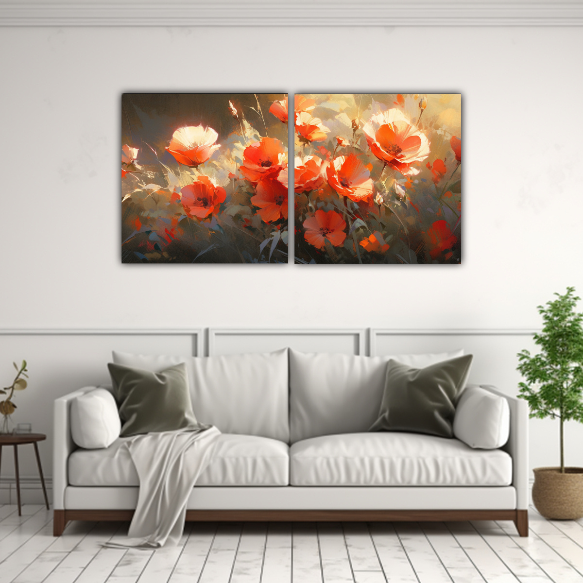 Cuadros Modernos Ambiente Flores Amarillas Y Rojas En Lienzo