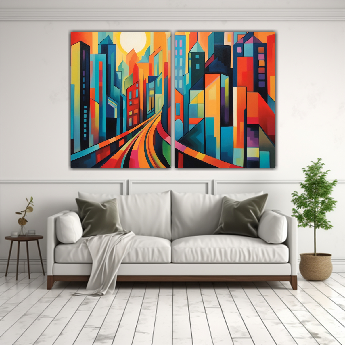 Agrega vida a tus paredes con los Cuadros modernos Full Color Bright and bold citiscape thick bold lines brig de DecoCuadros Diseños exclusivos y entrega rápida, envíos gratis en Santiago y express a regiones