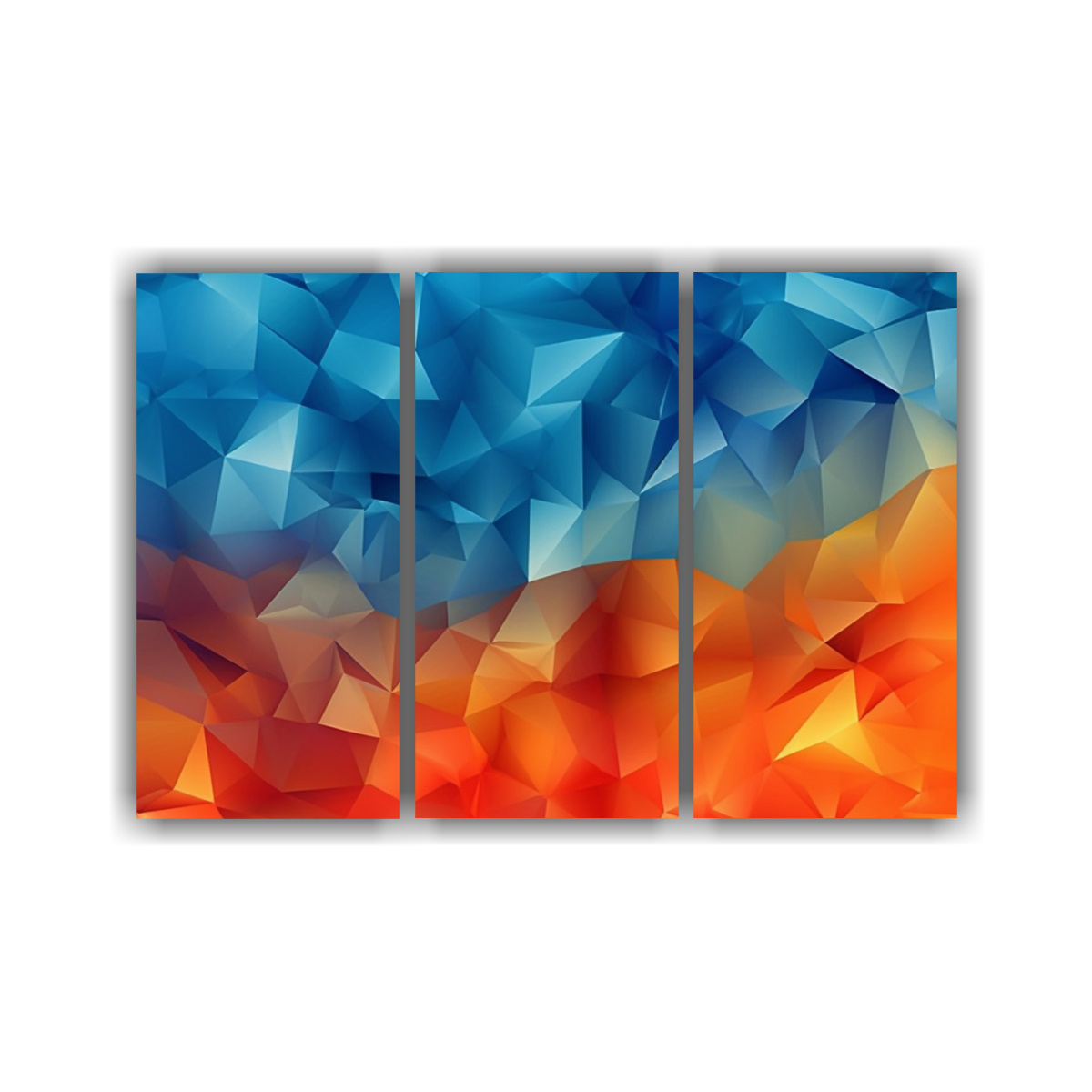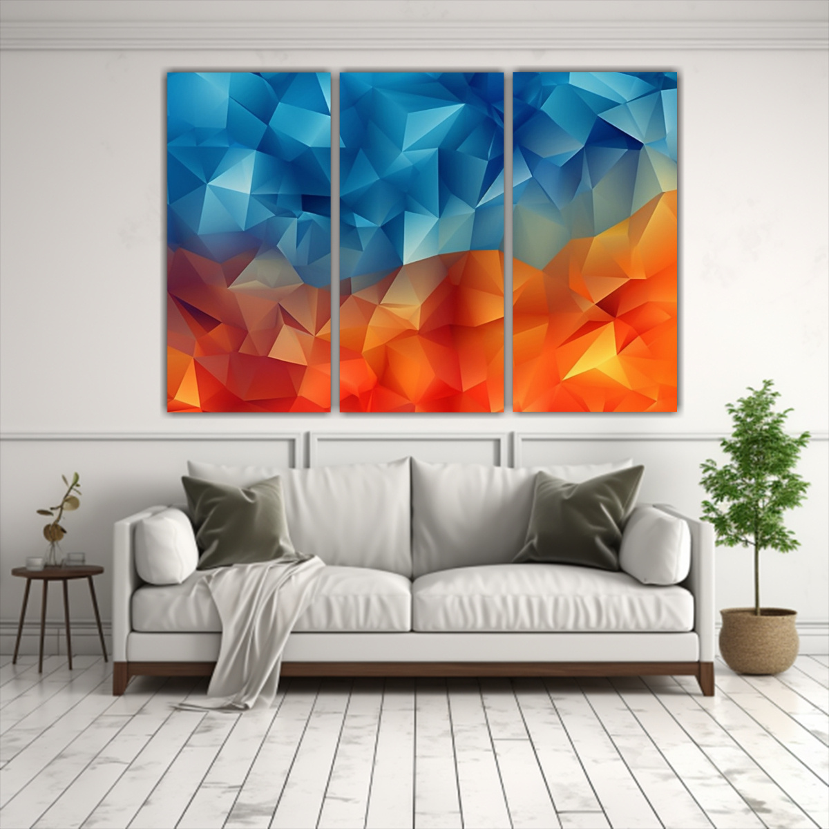 Este set de cuadros modernos coloridos con patrones de polígonos encajaría perfectamente en un salón de estilo contemporáneo, creando un punto focal vibrante y único Combínalos con muebles neutros para resaltar su diseño y colores