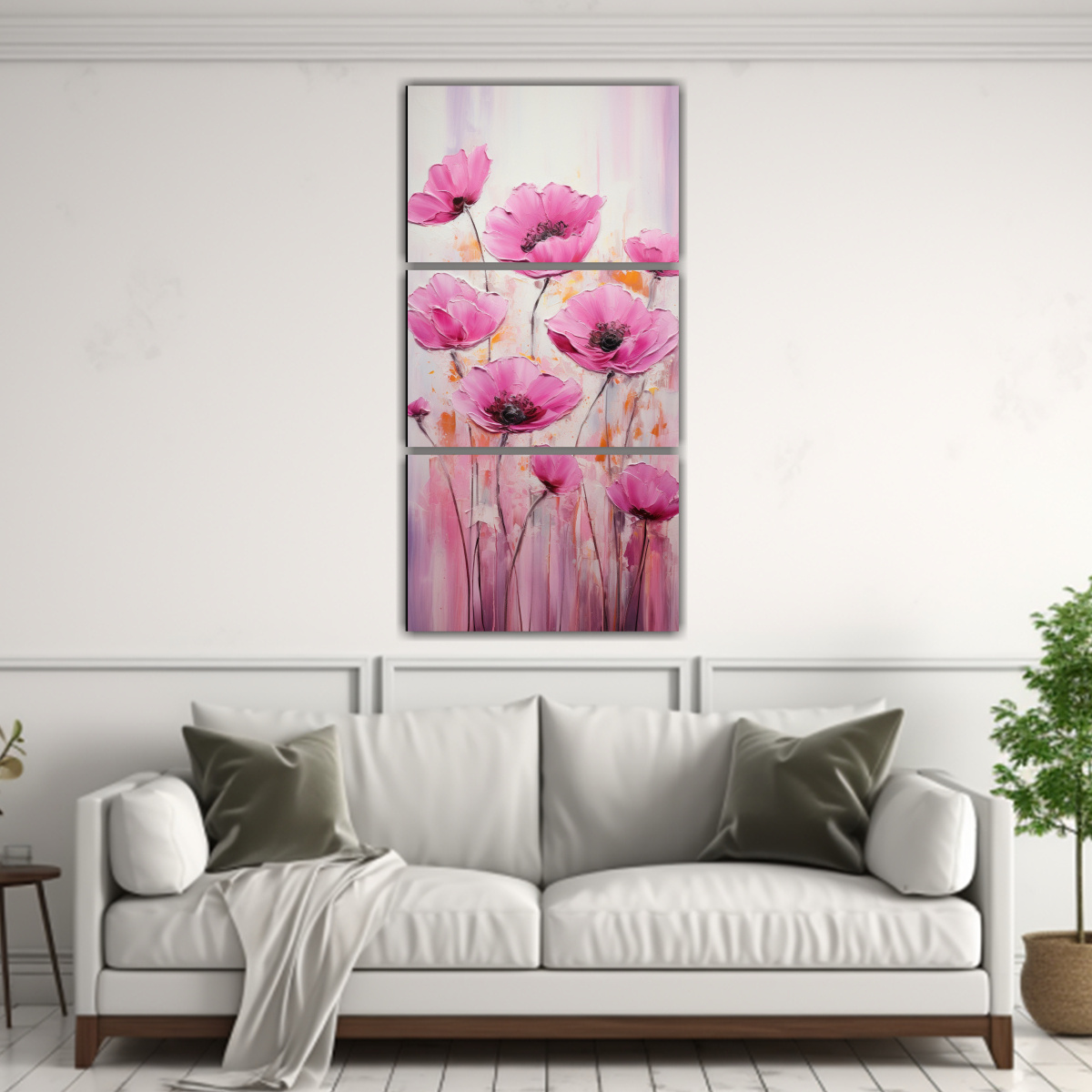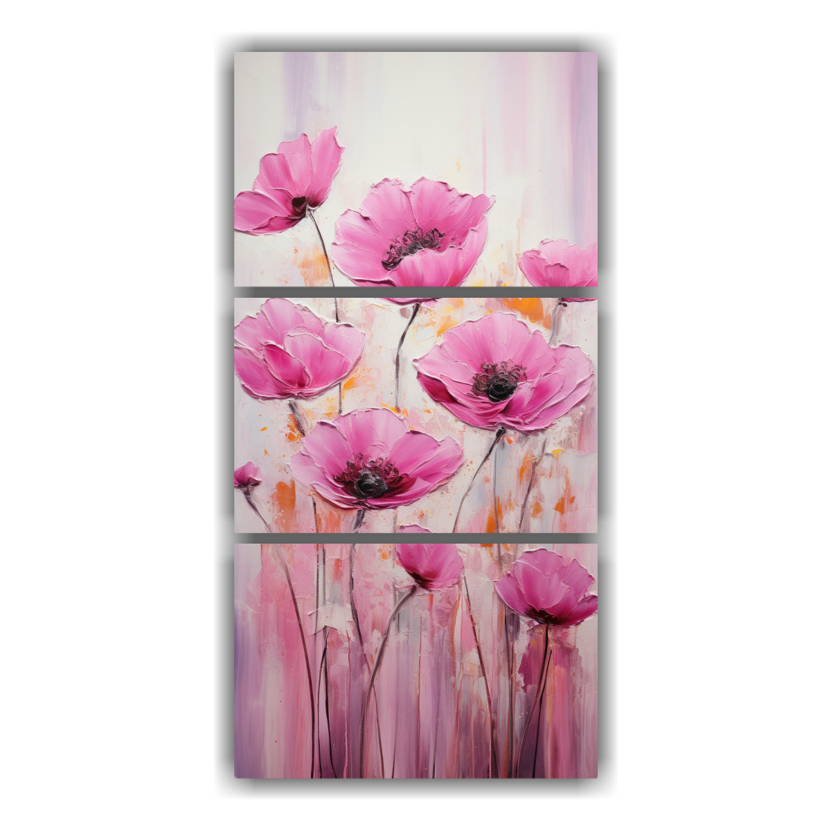 Cuadros Modernos Con Dinámicas Amapolas Rosas En Lienzo.
