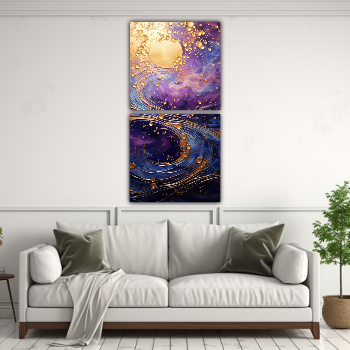 Descubre nuestros cuadros modernos de armonía con dos telas en bastidor de punto luminoso de líquidos Plateado, azul marino grisaceo, gris, violeta, lila, coral y carmesí son los colores disponibles En DecoCuadros ofrecemos calidad, diseño exclusivo y entrega rápida y gratuita en Santiago