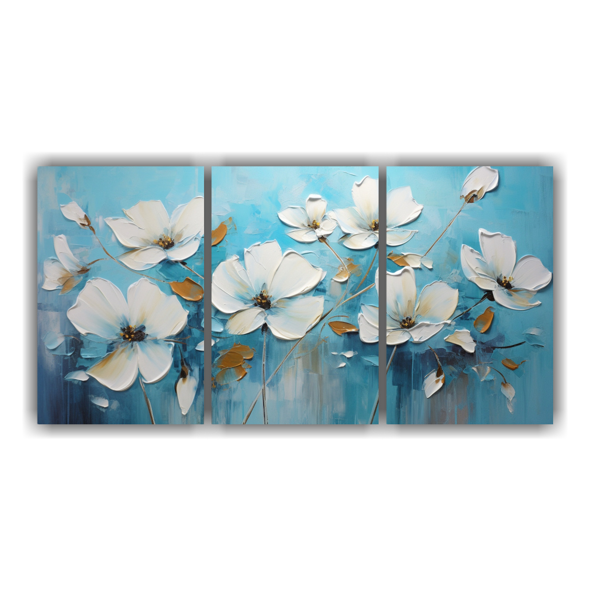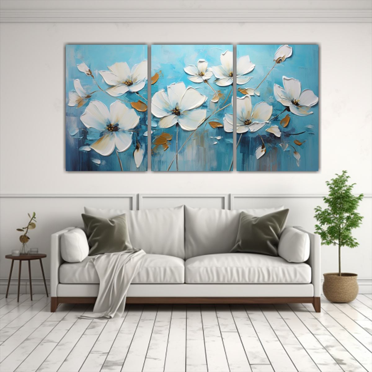 Cuadros Modernos De Flores En Estilo Urbano A Colores Cyan En Lienzo