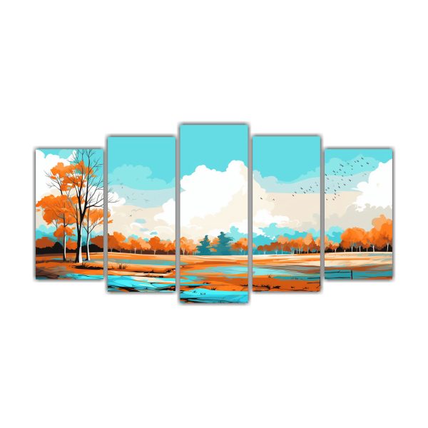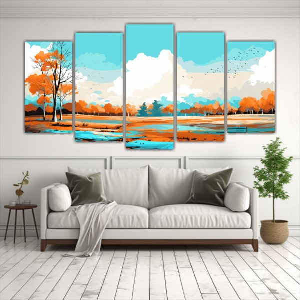 Cuadros Modernos De Paisaje Otoñal Con Colores Turquesa