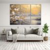 Cuadros Modernos De Paisajes Marinos Al Atardecer En Tonos Dorados