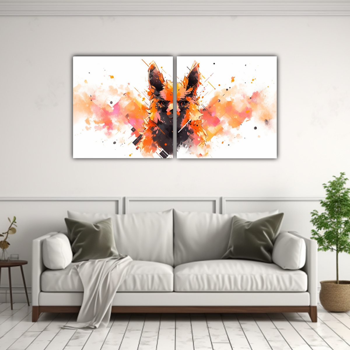Este set de cuadros Alpaca en Colores Naranja y Negro quedará perfecto en tu sala de estar sobre un sofá de color neutro, creando un contraste elegante y moderno Combínalos con cojines en tonos coral y gris para una decoración sofisticada