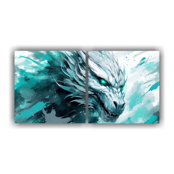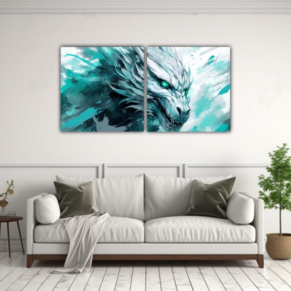 Este cuadro ‘Dragón blanco y turquesa en atmósfera neonoir’ es perfecto para destacar en una pared de tonos neutros como blanco o beige, creando un contraste elegante y sofisticado Colócalo en el centro de la pared para que sea el punto focal de la habitación