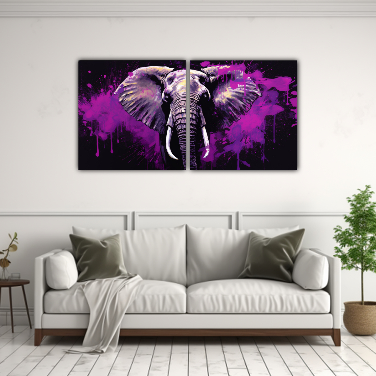 Este cuadro de elefante en tonos púrpura y negro es ideal para realzar la decoración de salas de estar o dormitorios modernos Combínalo con muebles en tonos beige, azul marino grisáceo o blanco para crear un ambiente vanguardista y sofisticado