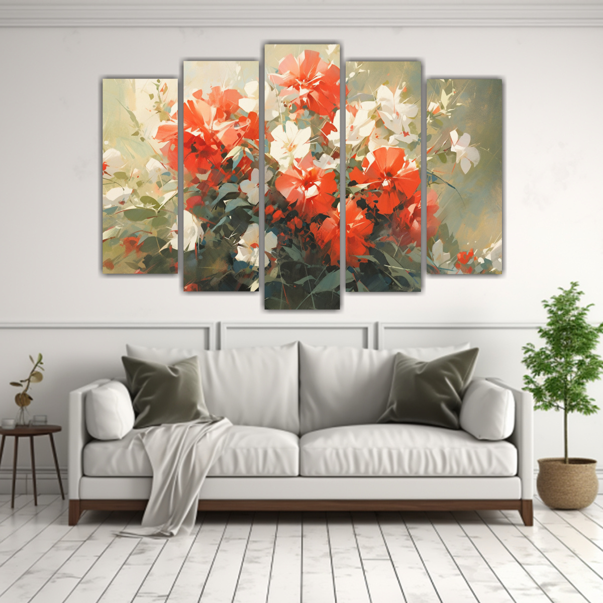 Este hermoso cuadro en tonos de verde y rojo con flores en lienzo es ideal para colocar en tu sala de estar o comedor Combínalo con muebles en tonos neutros para darle protagonismo ¡Aportará frescura y elegancia a tu ambiente!