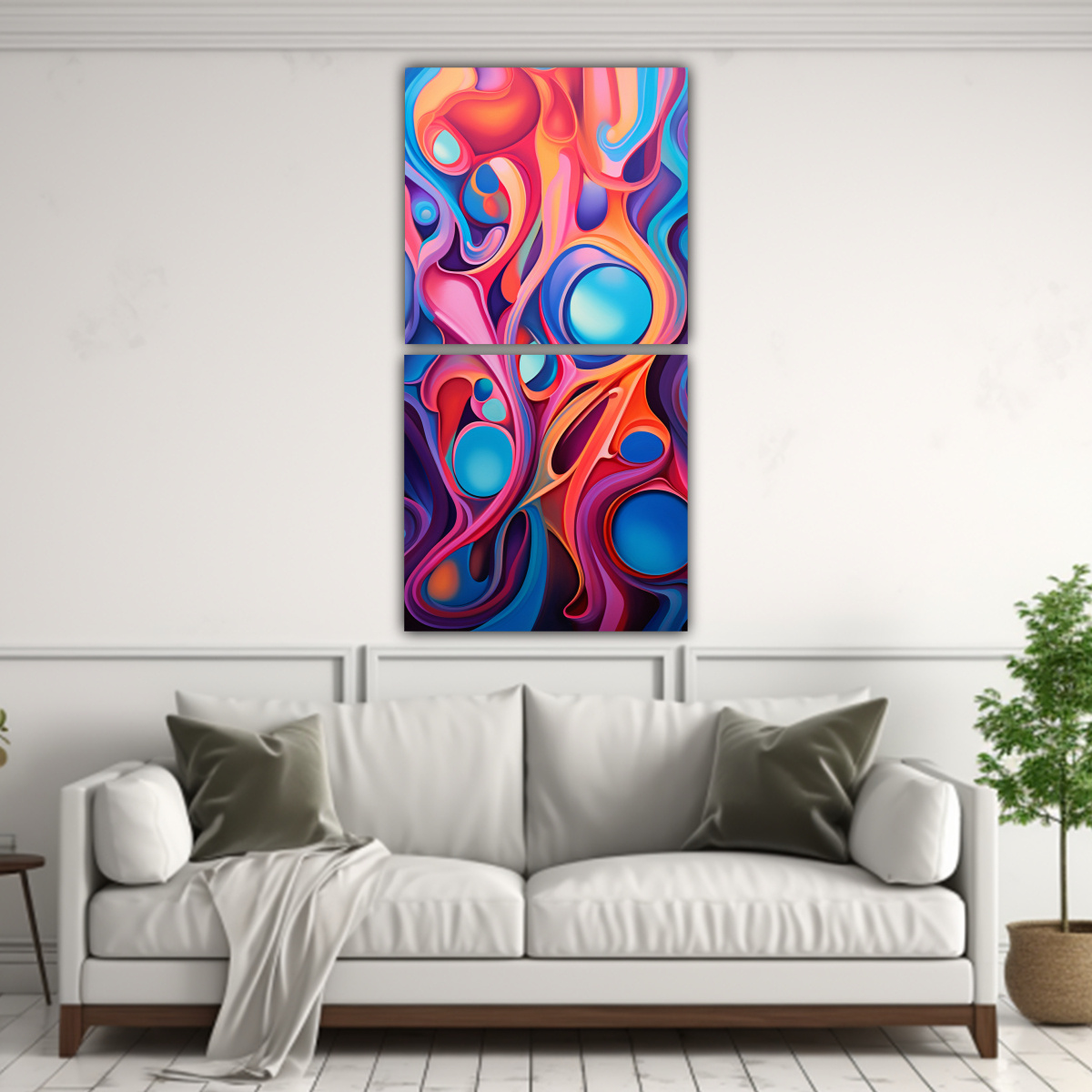 DecoCuadros – Set 2 Cuadros Moderno Escenario globs of oil paint in bright bold colors forming