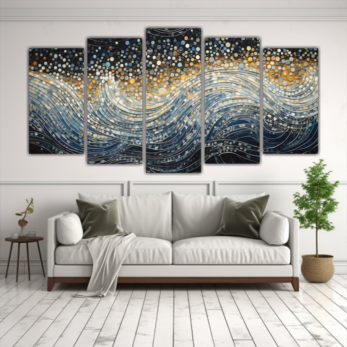 En DecoCuadros, te ofrecemos el Set de 5 Cuadros Modernos Estilo Luminoso Puntillismo, perfecto para darle un toque de elegancia y sofisticación a tu hogar Nuestros cuadros están impresos en tela de alta calidad con bastidores de madera, lo que garantiza una durabilidad excepcional Los colores plateado, gris, azul marino grisaceo, coral y chocolate se combinan de manera armoniosa en un estilo luminoso puntillista que le dará vida a cualquier ambiente
