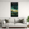 Recomendamos colocar este cuadro en el salón principal de tu hogar, sobre un mueble moderno de color blanco El contraste entre el paisaje de montaña y el estilo elegante del cuadro crea un ambiente sofisticado y relajante Acompáñalo con cojines en tonos plateados y grises para completar la decoración