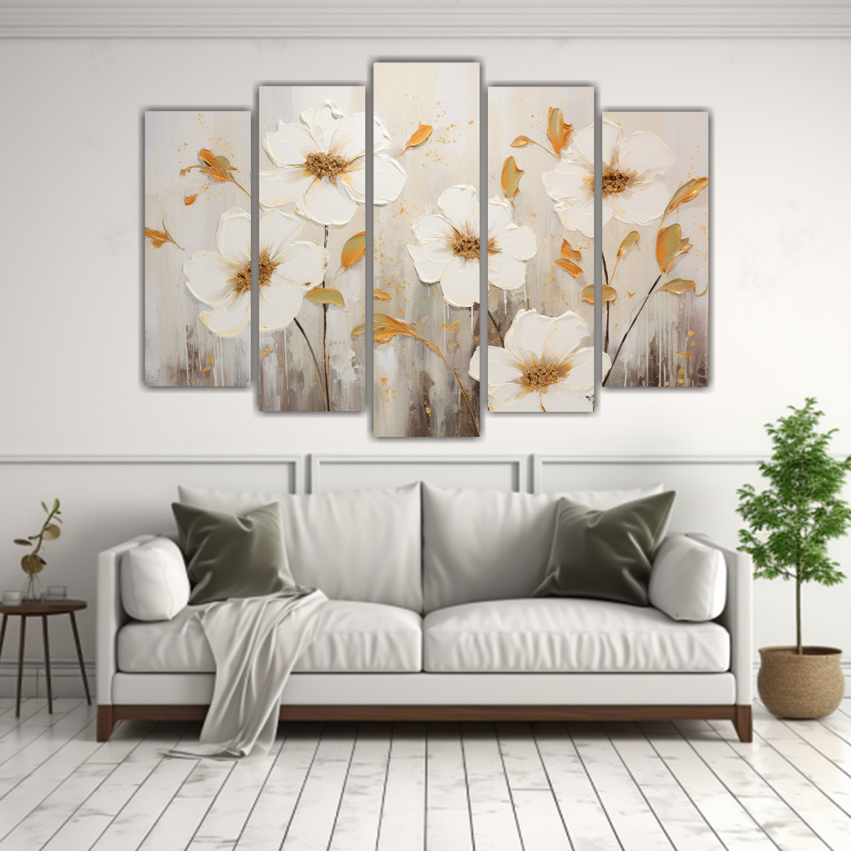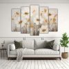 Cuadros Modernos Salon Blanco Y Oro Flores En Lienzo.