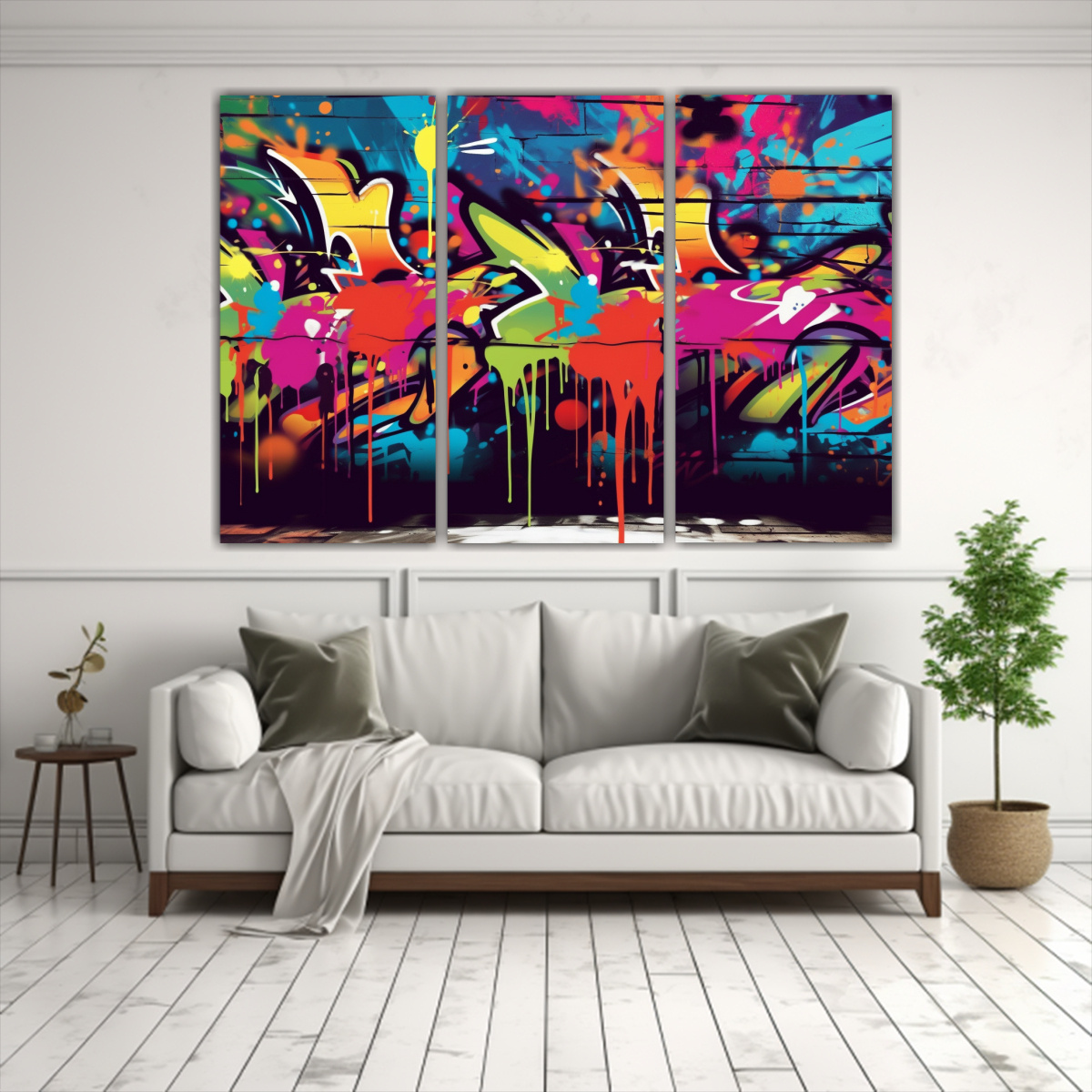 Este cuadro de graffiti de alta resolución es ideal para decorar espacios modernos como la sala de estar o un estudio creativo Colócalo en una pared blanca para resaltar sus colores vibrantes y crear un ambiente único y sofisticado