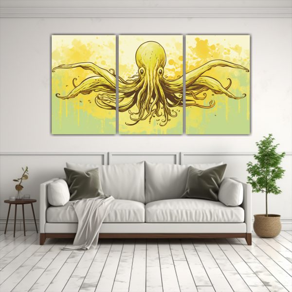 Coloca este Cuadro Movimiento Creativo con Cthulhu en una pared principal de tu sala de estar para darle un toque moderno y vibrante Combínalo con muebles en tonos neutros para resaltar su belleza única
