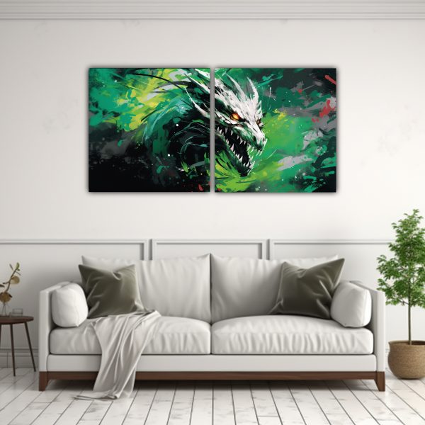 Cuadros Neonoir Vibrantes Y Verde Con Dragón: Equilibrio Y Alta Calidad